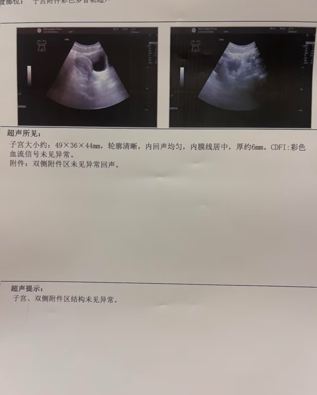 按照中医李主任的治疗方法,用了一段时间,明显感觉到卵巢囊肿包块小了,周末时间去医院做了个检查后,简直太让人惊喜了,从囊肿明显小了!实在是太开心了!完全超出我的预期,效果很明显,严格按照中医李主任的调理方案,用完所有疗程,渐渐身体所有不适症状完全消失了,整个人也越来越精神,之前摸到的肿块不知道什么时候也不见了!!我就去医院做了个复查,结果是子宫及双侧附件区未显示异常。